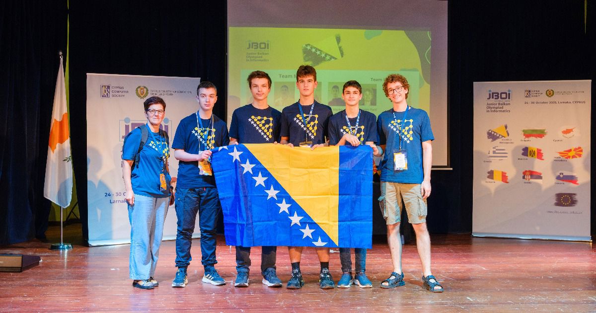 Ove sedmice najbolji osnovnoškolci regije su učestvovali na 18. Juniorskoj Balkanskoj olimpijadi iz informatike (JBOI 2025, jboi2025.schools.ac.cy), održanoj u Larnaci na Kipru. Na ovom takmičenju su kroz dva dana takmičenja pokazali svoje vještine rješavanja problema algoritamskim pristupom, pritom stvarajući nezaboravna iskustva sa drugim učesnicima iz regiona.